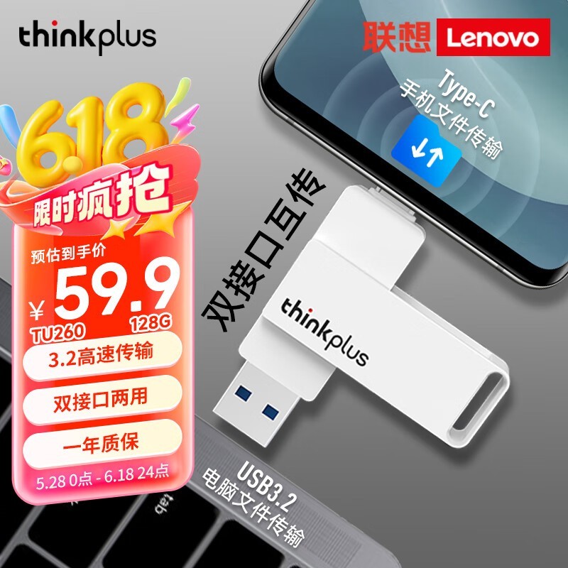 联想thinkplus TU260系列金属U盘限时特惠