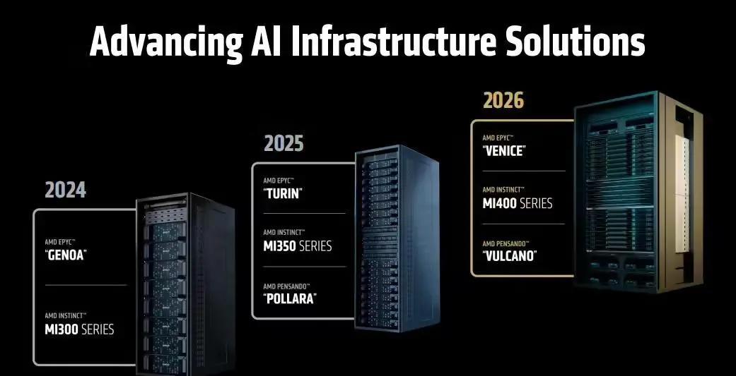 在本次大会上,AMD 展示了其全面的端到端集成人工智能平台愿景,并推出了全新基于行业标准的开放、可扩展的机架级人工智能基础设施产品。