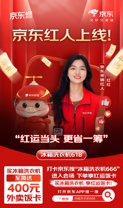 京东红就是人人红,现在下单指定冰箱、洗衣机就能获得400元红运饭卡!现在就打开京东APP搜索“冰箱洗衣机666”进入活动会场选购5折产品,618超值福利错过等一年!