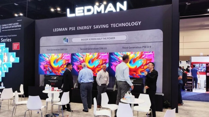 本次展会雷曼光电展示了PSE节能对比墙、DF系列Micro LED超高清显示屏、GM系列户内外租赁屏、X系列户内固装屏、智慧会议一体机等产品矩阵,覆盖数字广告、指挥调度、智能会议等全场景体验。