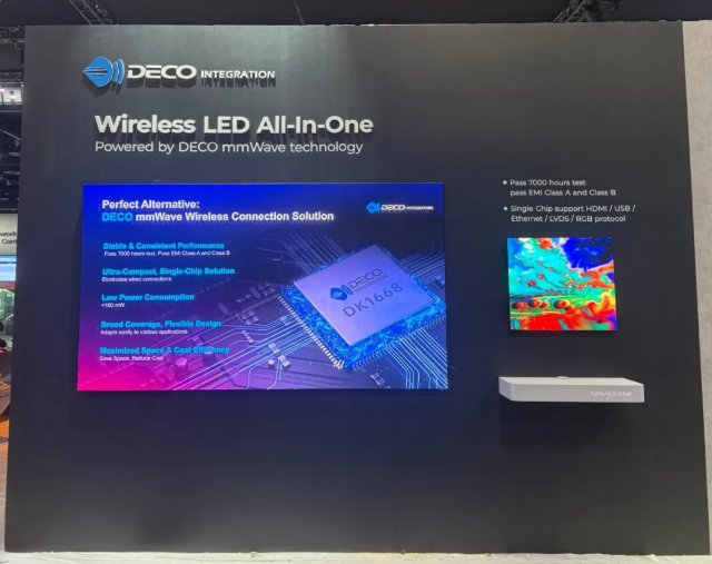 德氪微独家研发的毫米波无线连接方案此前已实现LED显示屏内的无线数据传输和无线供电,此次正式延伸至模组级,进一步夯实其“全屏无线化”的战略布局,推动拼接效率提升与终端形态创新,为显示系统集成商和应用方带来更高效、更可靠、更灵活的解决方案。