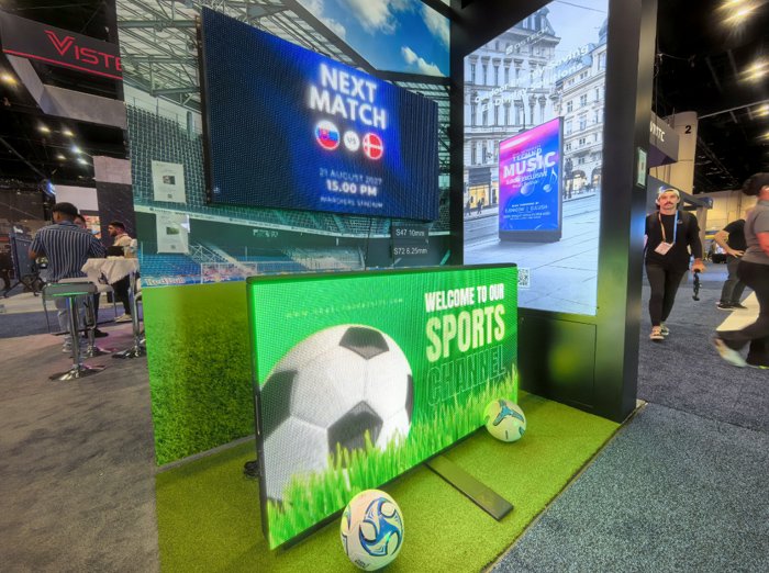 展会上,雷曼子公司康硕展以 “解锁显示技术新想象” 为核心,设立了互动展示区、户外展示区、COB 展示区和创意展示区四大展区。