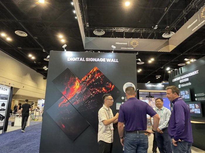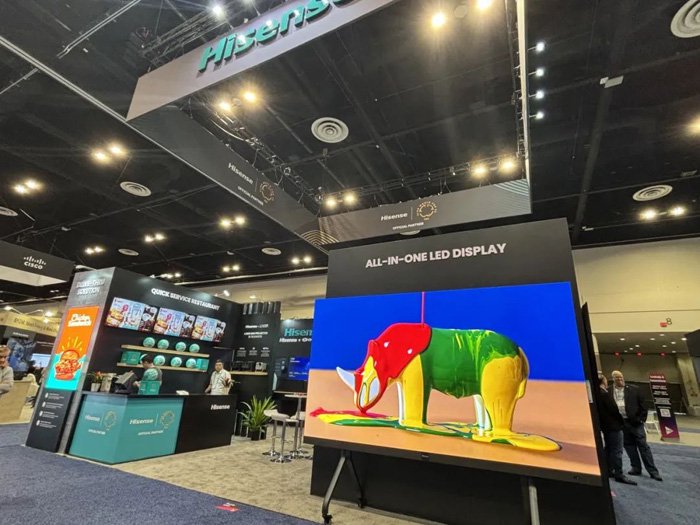 136英寸COB LED一体机、得来速餐厅场景户外COB、7*24小时数字标牌DM系列、7*16小时数字标牌DP系列、智慧触控一体机、商用激光投影及信发集控平台VisionInfo等,并联合海信4K三色激光影院产品参展,为零售、教育、办公、文体娱乐等场景提供数字化转型新范式。