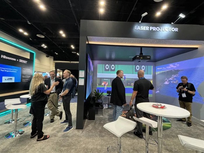 海信商用显示与海信美国激光产品联合亮相,现场展示4K三色激光影院L9Q,三色激光投影C2 Ultra,为家庭用户带来高端视听品质和大屏沉浸观影体验。