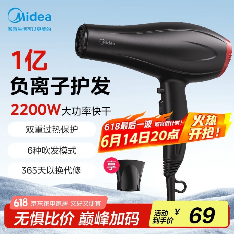 美的静音负离子吹风机大功率家用不伤发护发筒