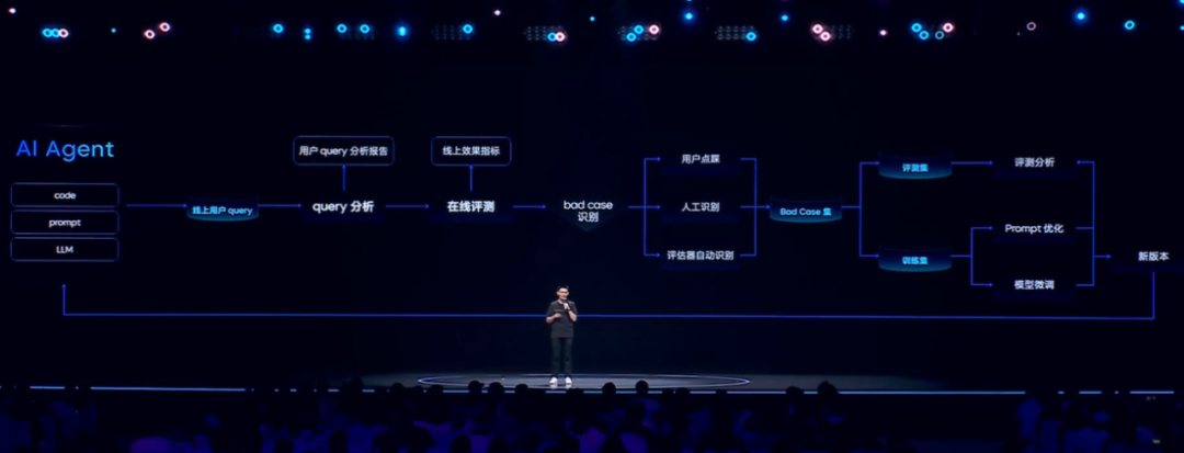 当然,并不是到调优阶段就停止了,相反优化后的 Agent 会重新进入到新一轮的开发、效果评测、线上观测以及效果优化,如此循环往复,达到用户满意为止。