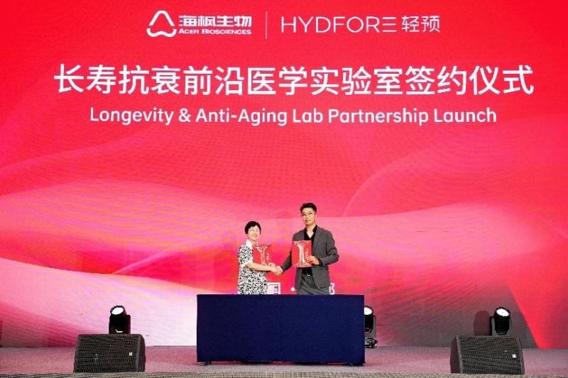 在大会的见证下,上海轻预生物科技有限公司、成都海枫生物科技有限公司联合成立的“长寿抗衰前沿医学实验室”正式签约落成。上海市第九人民医院医学美容博士、轻预首席研发官鲁楠博士,海枫生物首席技术总监蔡绍晖教授、轻预品牌主理人LEO等出席仪式,并就“人体长寿应对技术、生物再生材料的相关应用,及联合实验室的发展愿景”等相关议题展开深入探讨。