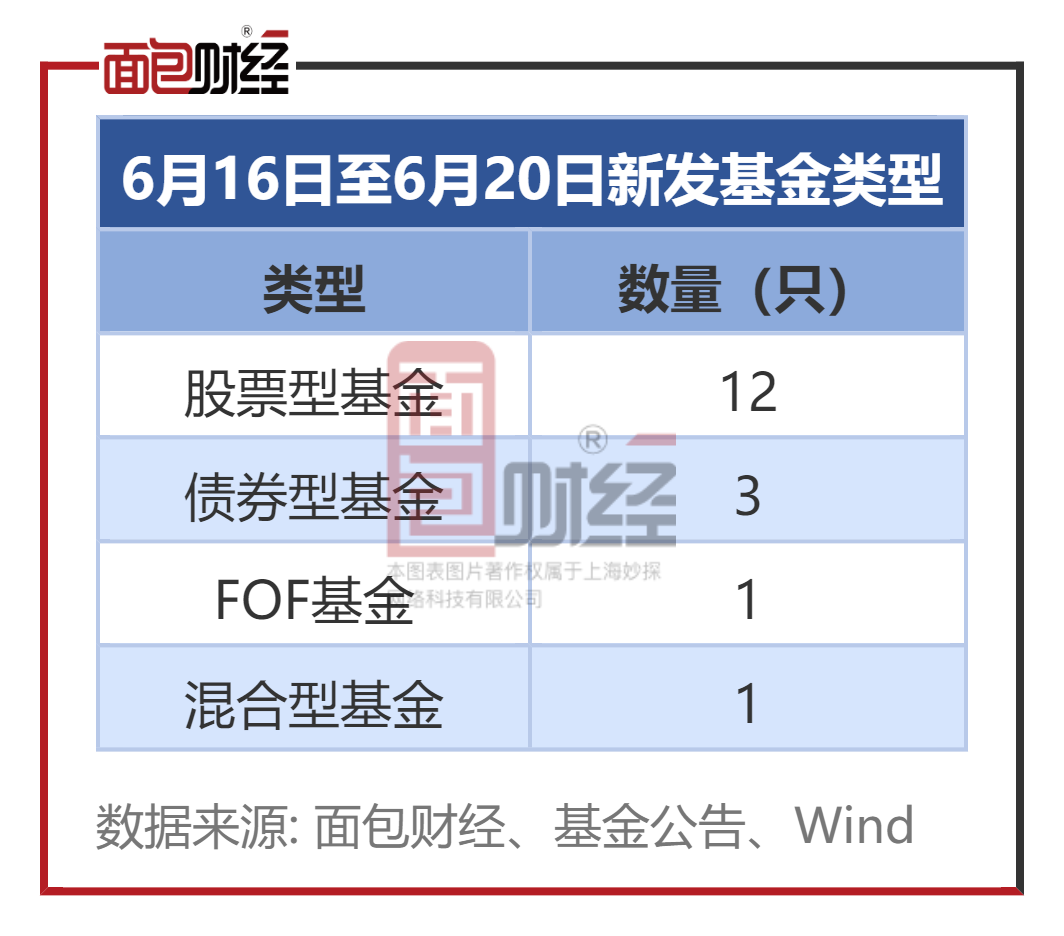 截至6月13日收盘数据,按认购起始日统计,6月16日至6月20日,公募基金市场将有17只新基金(仅统计初始基金口径并剔除转型及和后分级基金,下同)面市,涉及15家基金公司,平均募集期约21天。