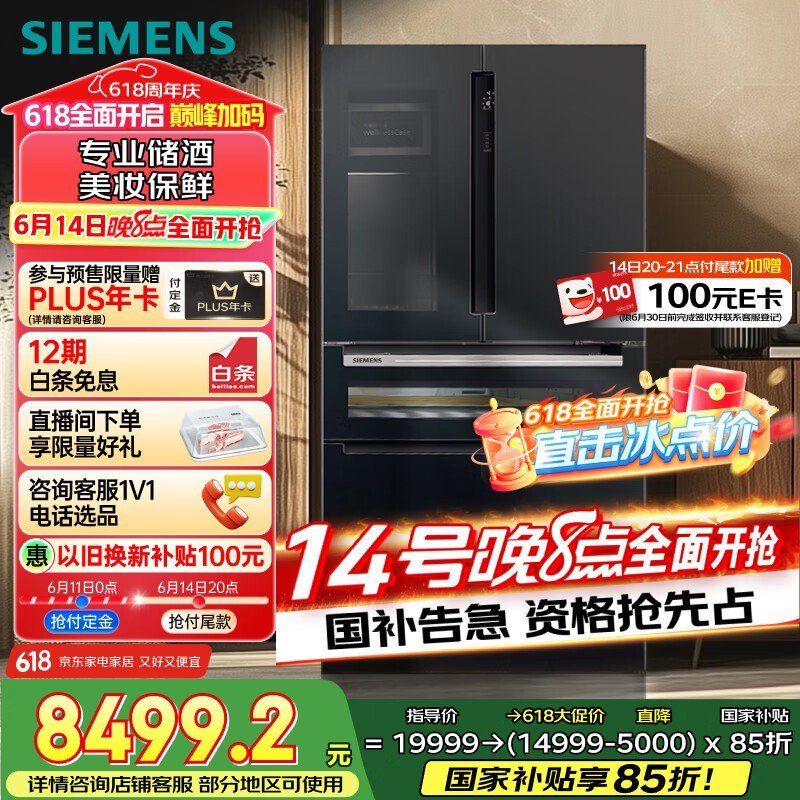 西门子KF96FPB50C 567L冰箱京东促销低至9499元