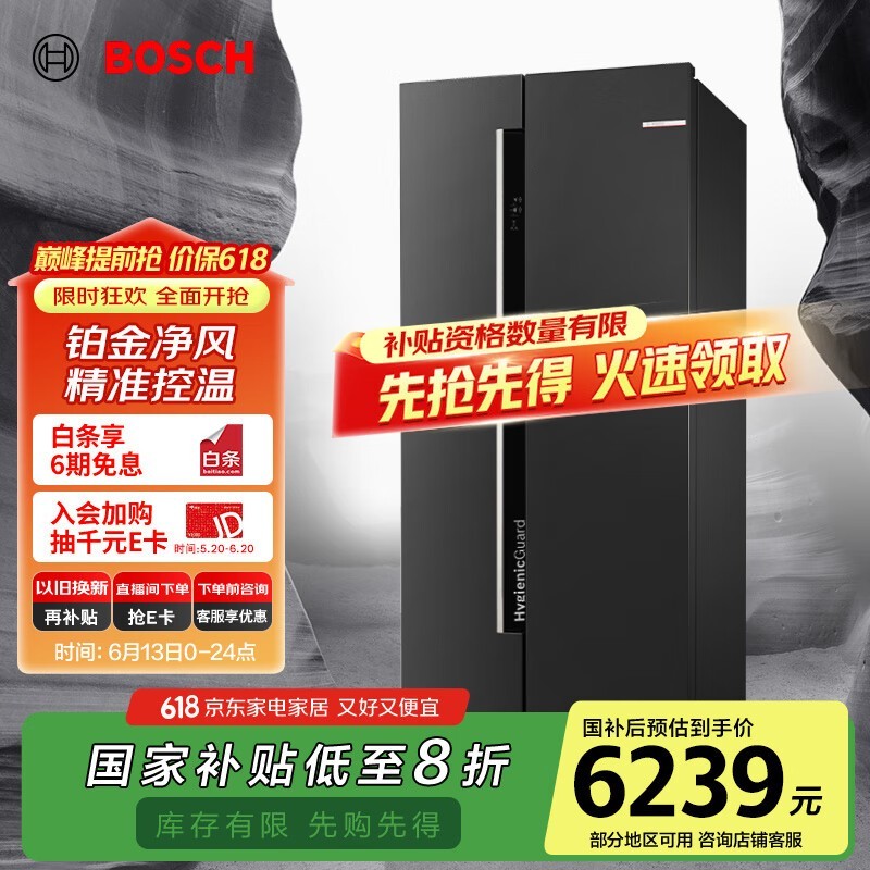 博世630L风冷对开门冰箱限时特惠6214元