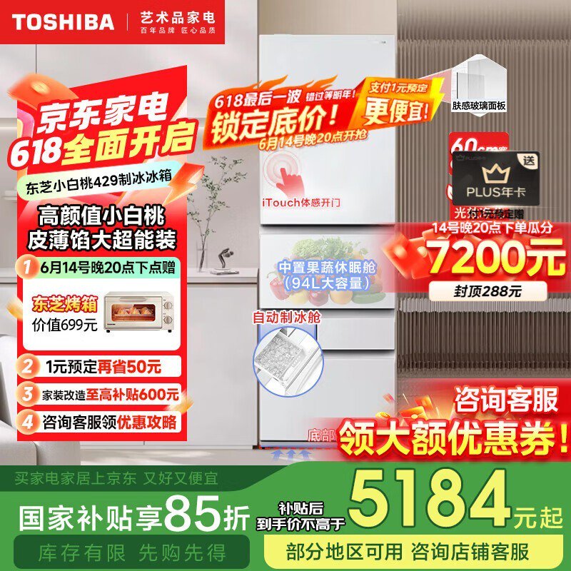 东芝小白桃429冰箱节能静音风冷无霜