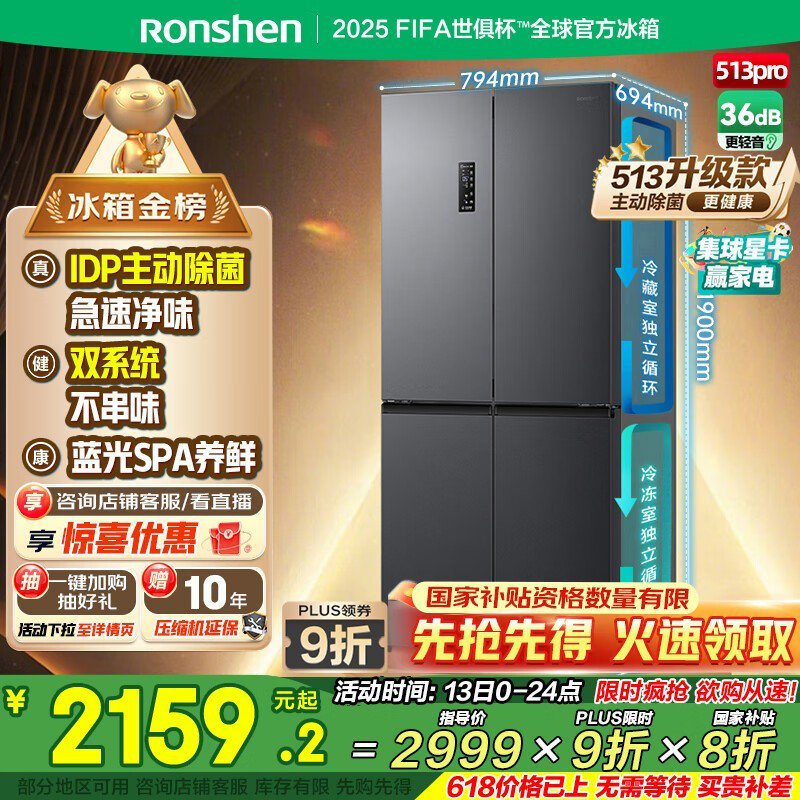 容声513升IDP双净十字电冰箱,节能低噪大容量