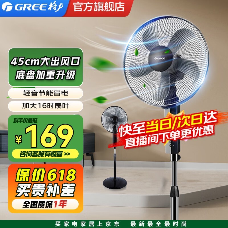 格力GREE FD - 4012 - WG黑色落地扇促销价126元
