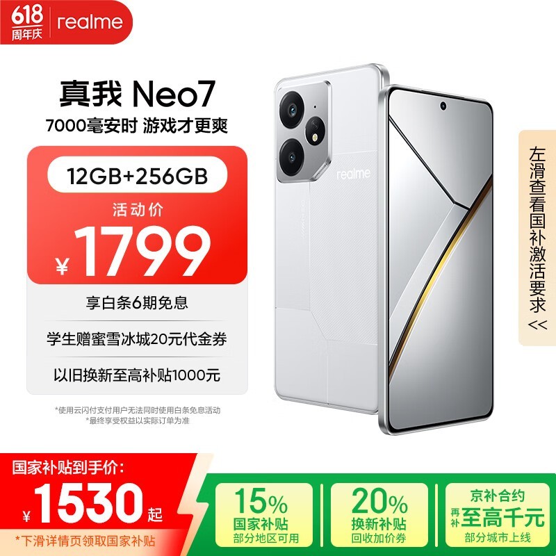 realme Neo7 5G星舰版手机京东优惠价低至1198元