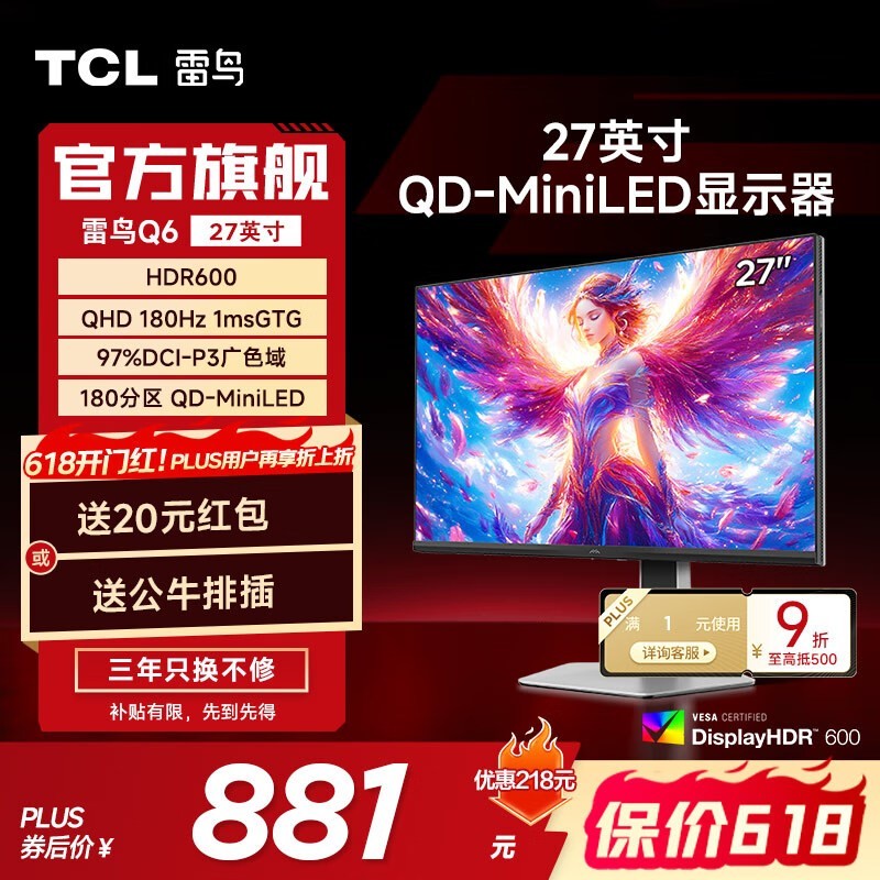TCL R27Q61 27英寸电竞显示器京东优惠价710元