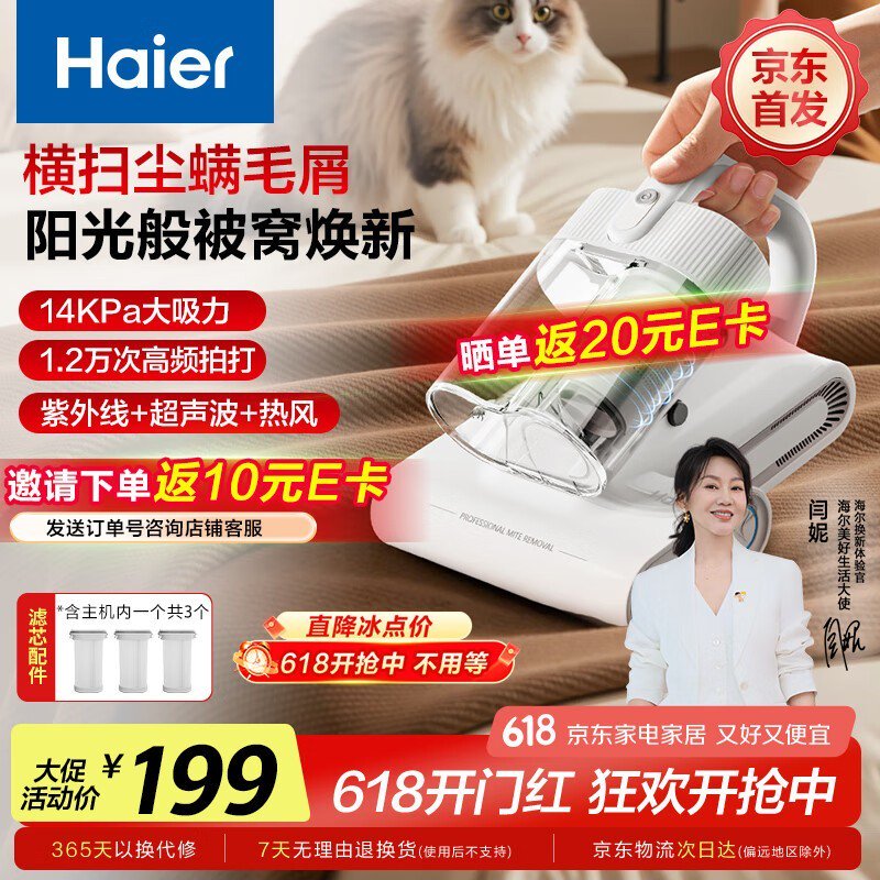 海尔白巧除螨仪床宝家用吸尘器限时特惠69.1元