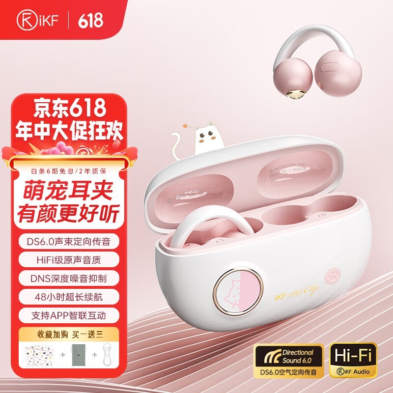 iKF Pet Clip真无线蓝牙耳机运动舒适气骨传动漫粉白高音质低延迟
