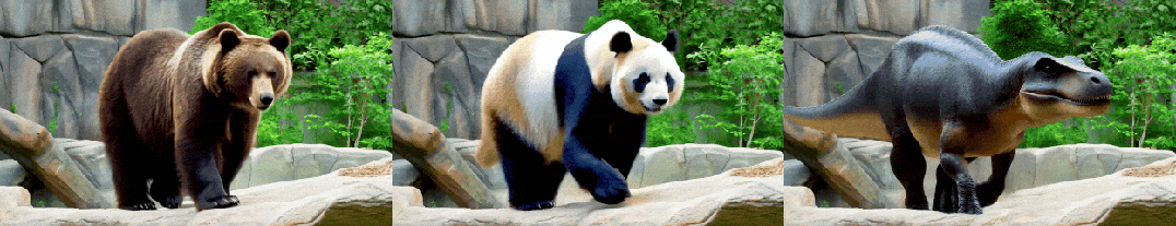 FlowDirector 能够精准捕捉并反映提示中指定的关键风格属性(例如颜色、材质等),优先确保文本语义与视觉效果的高度对齐。同时,我们的方法在保证目标区域发生预期变化的前提下,也能确保输出视频的整体布局稳定与结构完整:无论是主体替换、属性修改,还是局部增删,背景纹理和时序连贯性都始终如一。