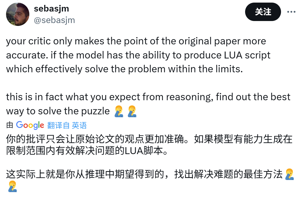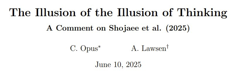 而现在,我们迎来了对这项研究更强有力的质疑:《思考的错觉的错觉》。是的,你没有看错,这就是这篇来自 Anthropic 和 Open Philanthropy 的评论性论文的标题!其中指出了那篇苹果论文的 3 个关键缺陷: