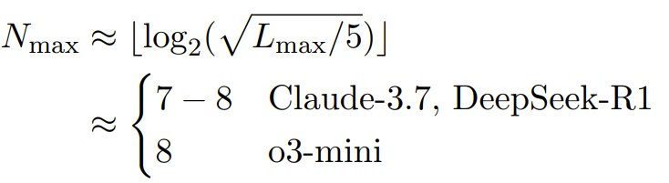 考虑到分配的 token 预算(Claude-3.7-Sonnet 和 DeepSeek-R1 为 64,000 个,o3-mini 为 100,000 个),则最大可解规模为: