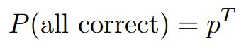 其中 p 表示每个 token 的准确度,T 表示 token 总数。如果 T = 10,000 个 token,则有: