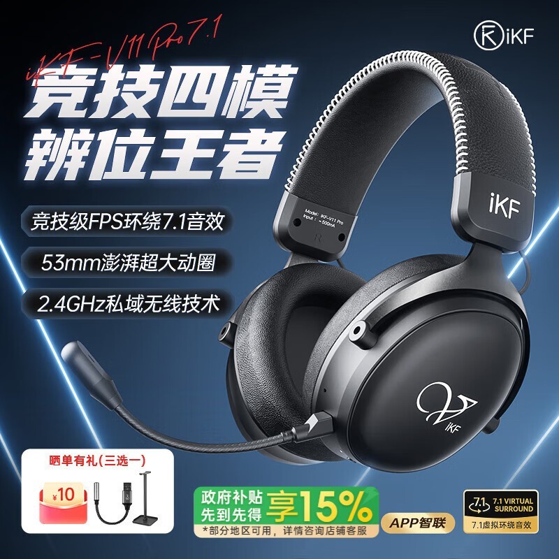 iKF V11 Pro电竞耳机7.1环绕音效蓝牙多设备连接