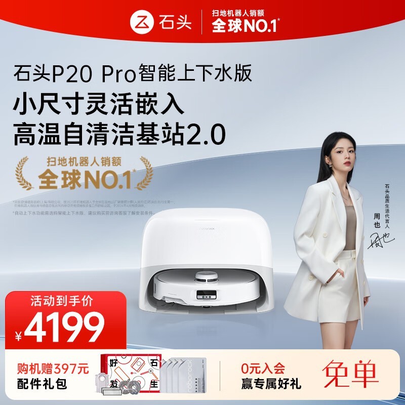 石头P20 Pro扫拖一体机限时特惠,到手价2113元