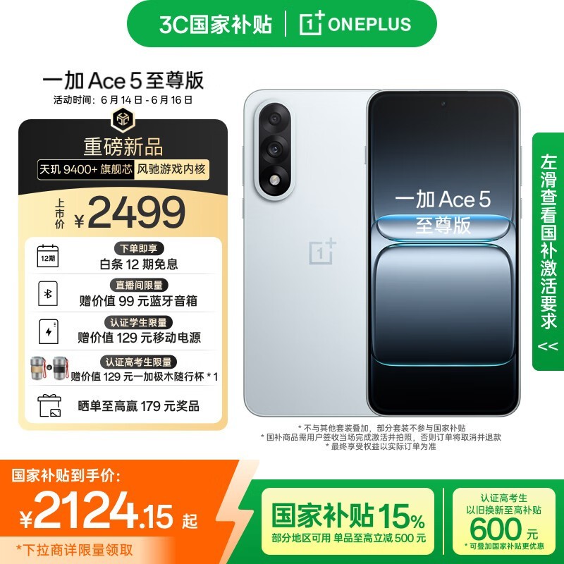 一加OnePlus Ace 5至尊版(12GB+256GB清风蓝)京东优惠