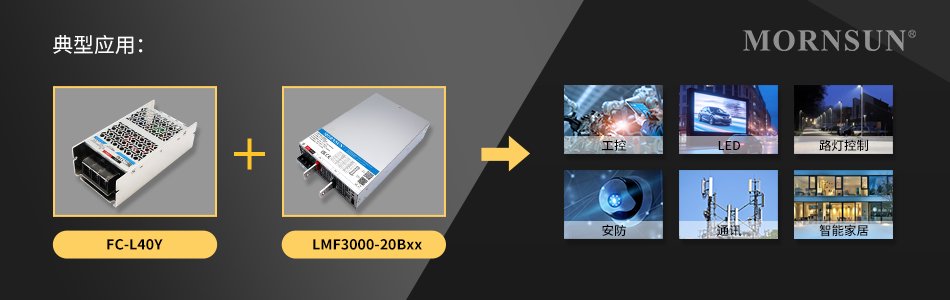 FC-L40Y配套金升阳AC/DC大机壳LMF3000-20Bxx系列电源,广泛应用于工控、LED、路灯控制、安防、通讯、智能家居等。