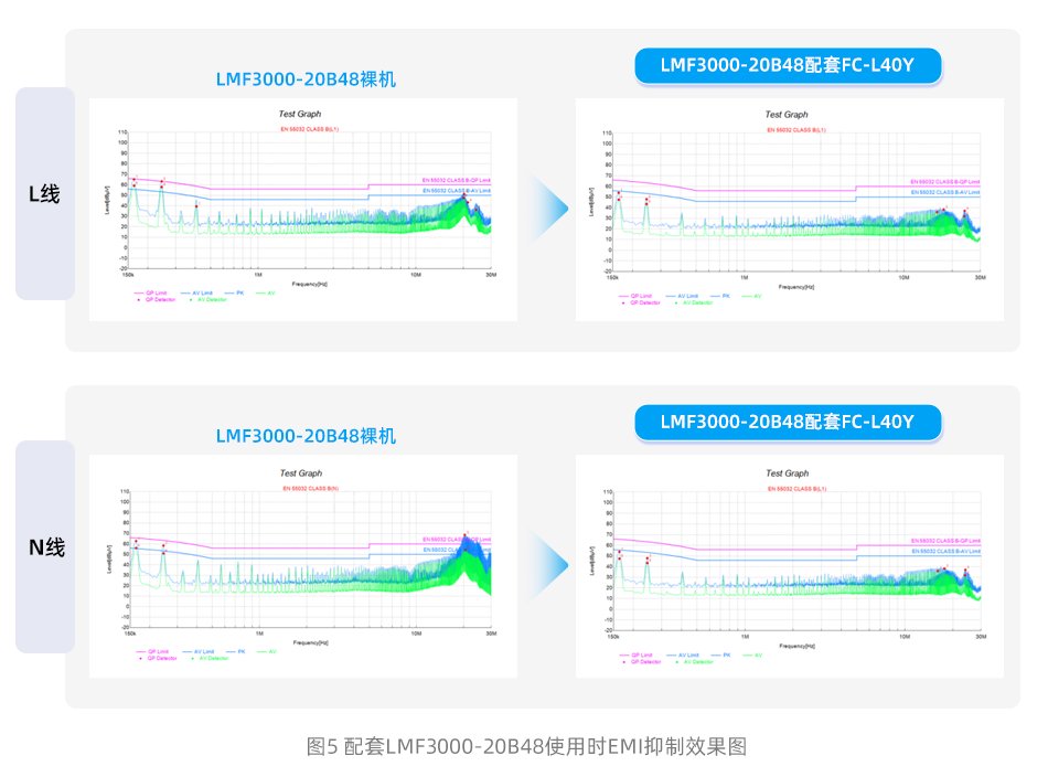 ③LMF3000-20B48配套FC-L40Y测试能满足Class B,余量有8dB以上。