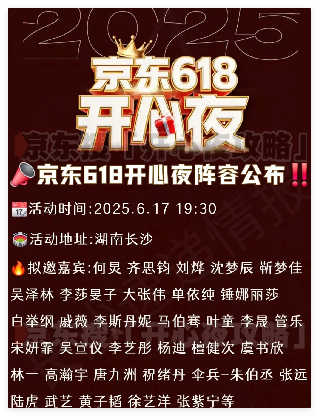 2025年京东618购物节迎来高潮,由京东联合湖南卫视、芒果TV共同制作的年度压轴晚会《京东618开心夜》正式定档6月17日19:30!作为电商娱乐晚会的行业标杆,本次活动以“福至年中 开心派送”为主题,通过四大主题派对、沉浸式互动和超值福利,为消费者呈现一场购物与娱乐的双重狂欢。以下从观看方式、亮点解析到福利攻略,一文详解!
