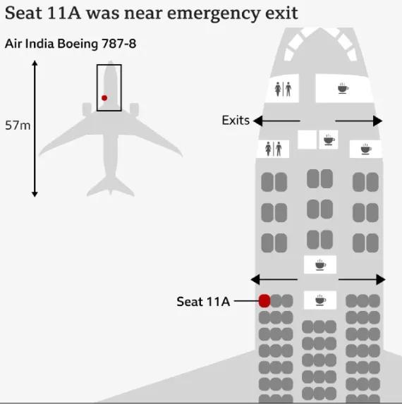 印度航空座位图,红色为生还者座位