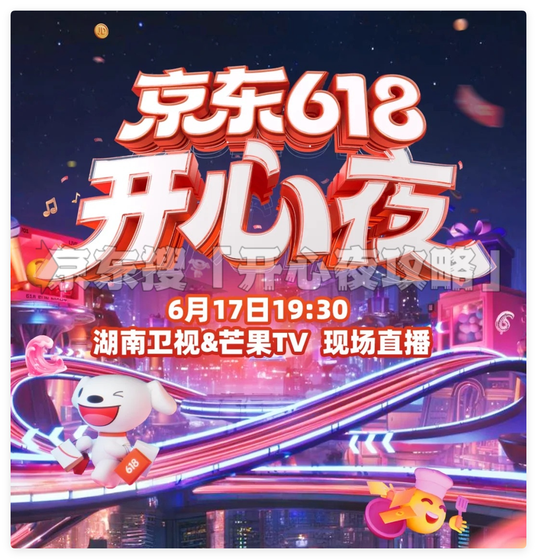 京东618购物节即将迎来压轴狂欢——6月17日晚19:30,《京东618开心夜》晚会将在湖南卫视、芒果TV及京东APP同步直播!这场集结张艺兴、那英、大张伟、周深等数十位明星的盛宴,不仅有多元主题舞台秀,更将送出LABUBU大天使公仔、2025元红包等万份豪礼。本文将手把手教你如何观看直播、参与互动抢福利!