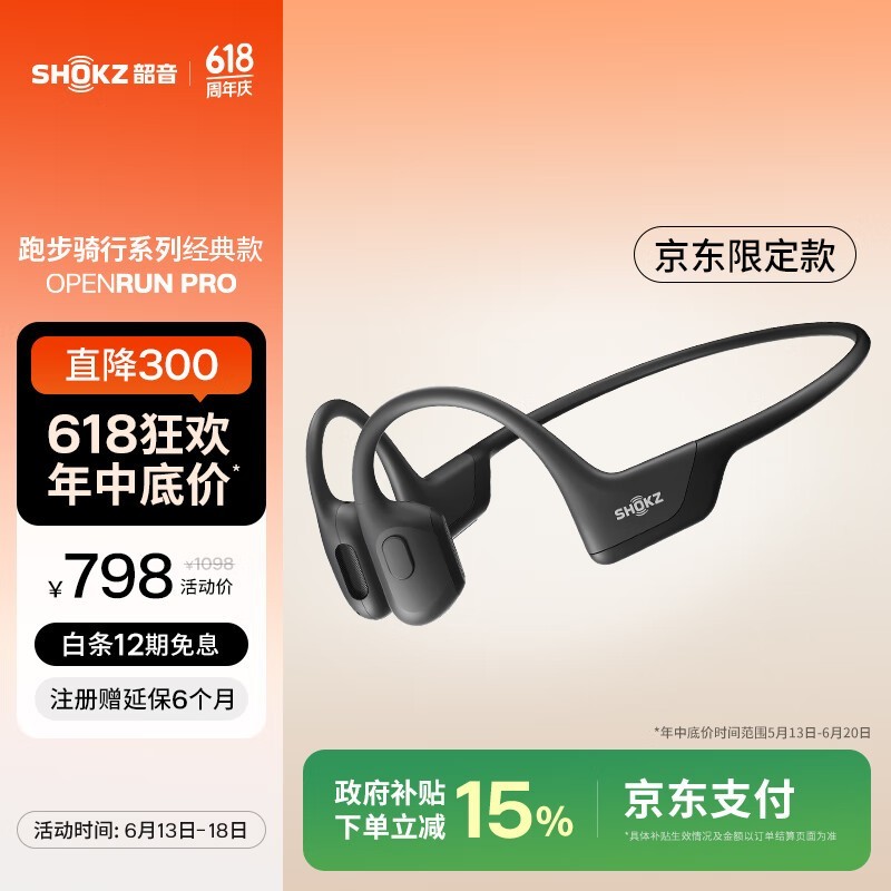 SHOKZ韶音OpenRun Pro骨传导运动耳机骑士黑限时特惠644元