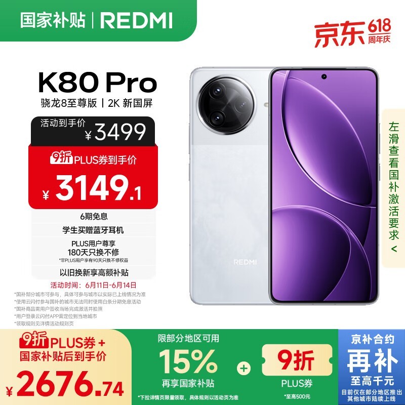 红米K80 Pro 5G 12GB+512GB雪岩白超值优惠