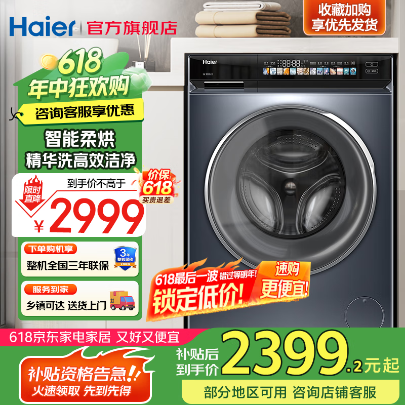 海尔云溪经典洗烘一体机3999元到手2399元