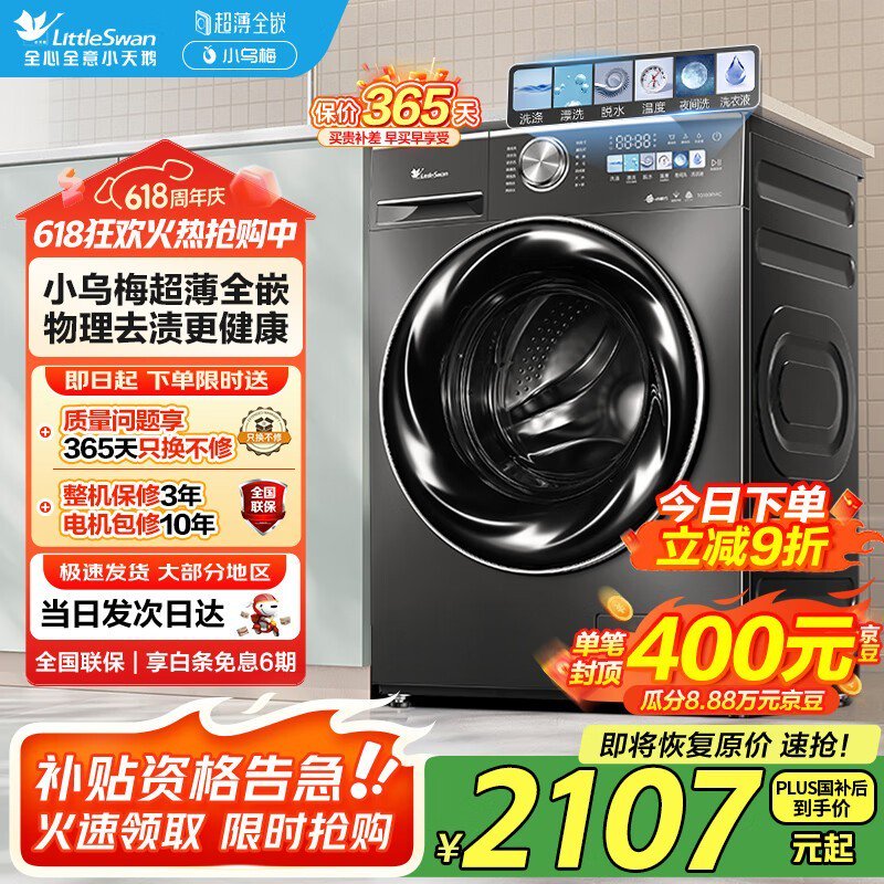 小天鹅小乌梅TG100RVIC滚筒洗衣机促销价1283元