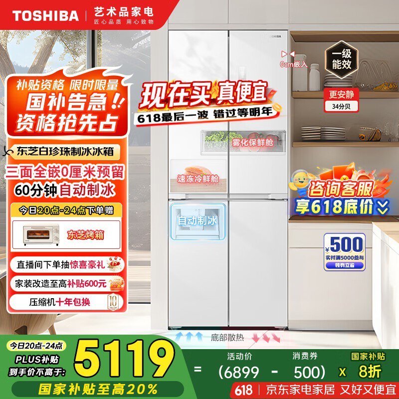 东芝GR - RF450WI - PM151风冷冰箱429L到手价4823元