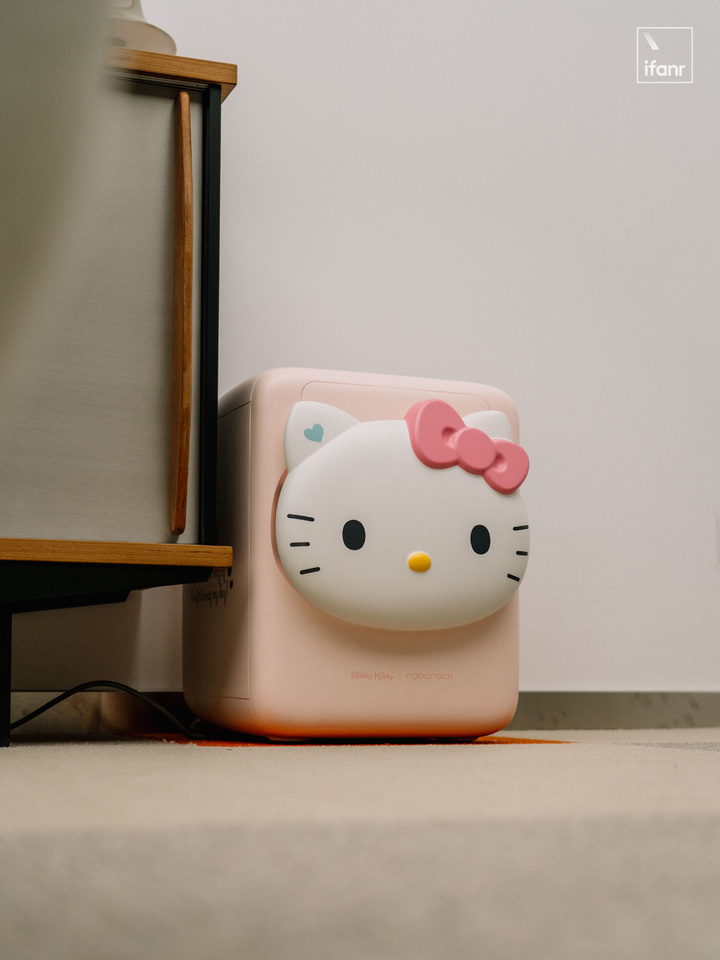 限定版还提供一个 Hello Kitty 面盖,能够直接磁吸在舱门上面。配合略带粉色调的复古白机身和粉色字体,看着就一体性很强,很萌很 Hello Kitty。