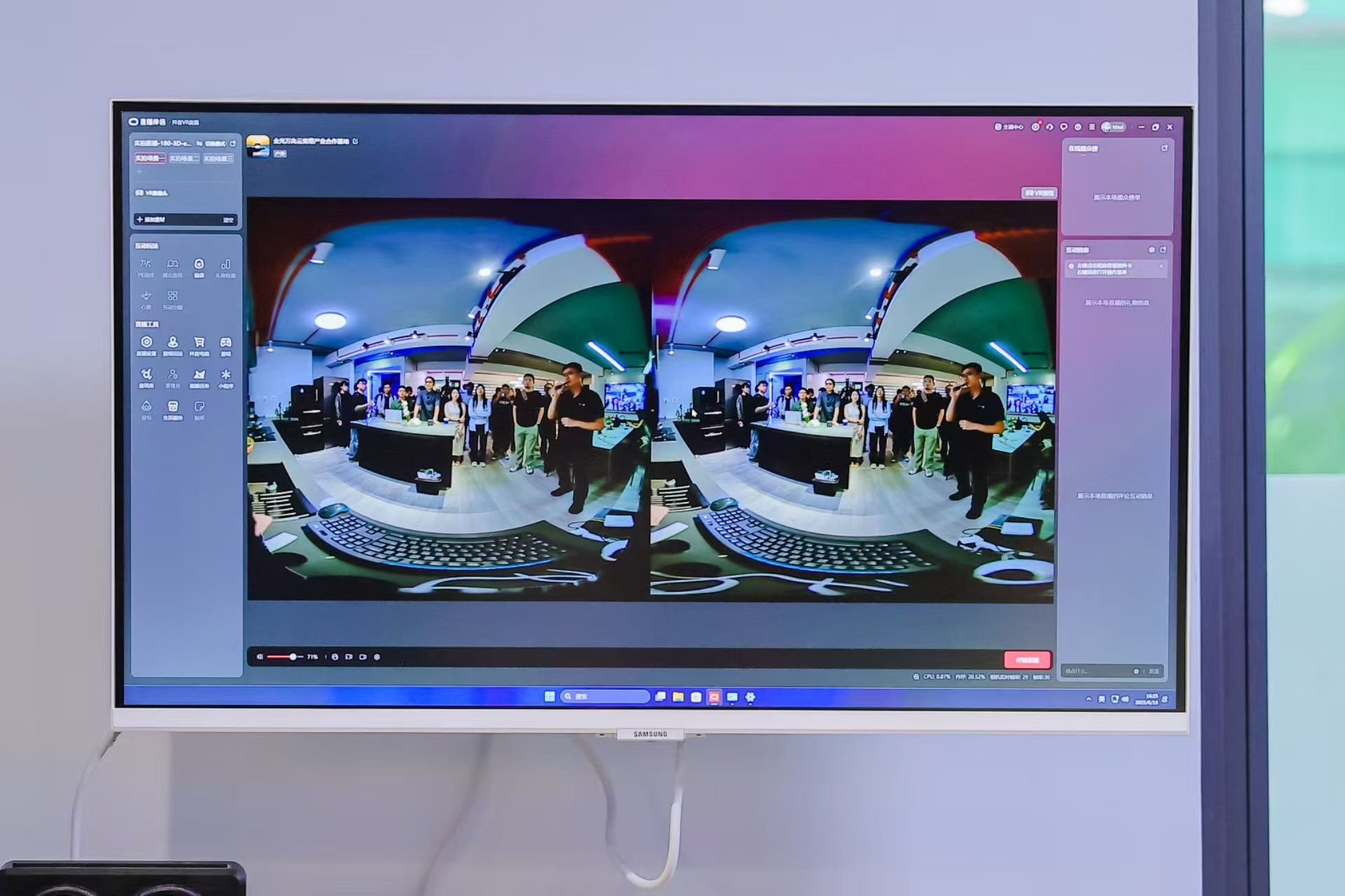 现在个人和小微企业做网络直播很常见,但是3D直播对网络要求非常高,一般光宽带无法支撑。记者此次在现场见到了基于F5G-A万兆宽带的超高清3D直播演示,一台专业的双目3D相机负责实时捕捉和生成8K立体画面,数据通过万兆带宽传到云端进行处理和分发,观众可以用PAD或VR头盔来观看。变换角度和方向,可以看到仿若在现场的视觉效果。