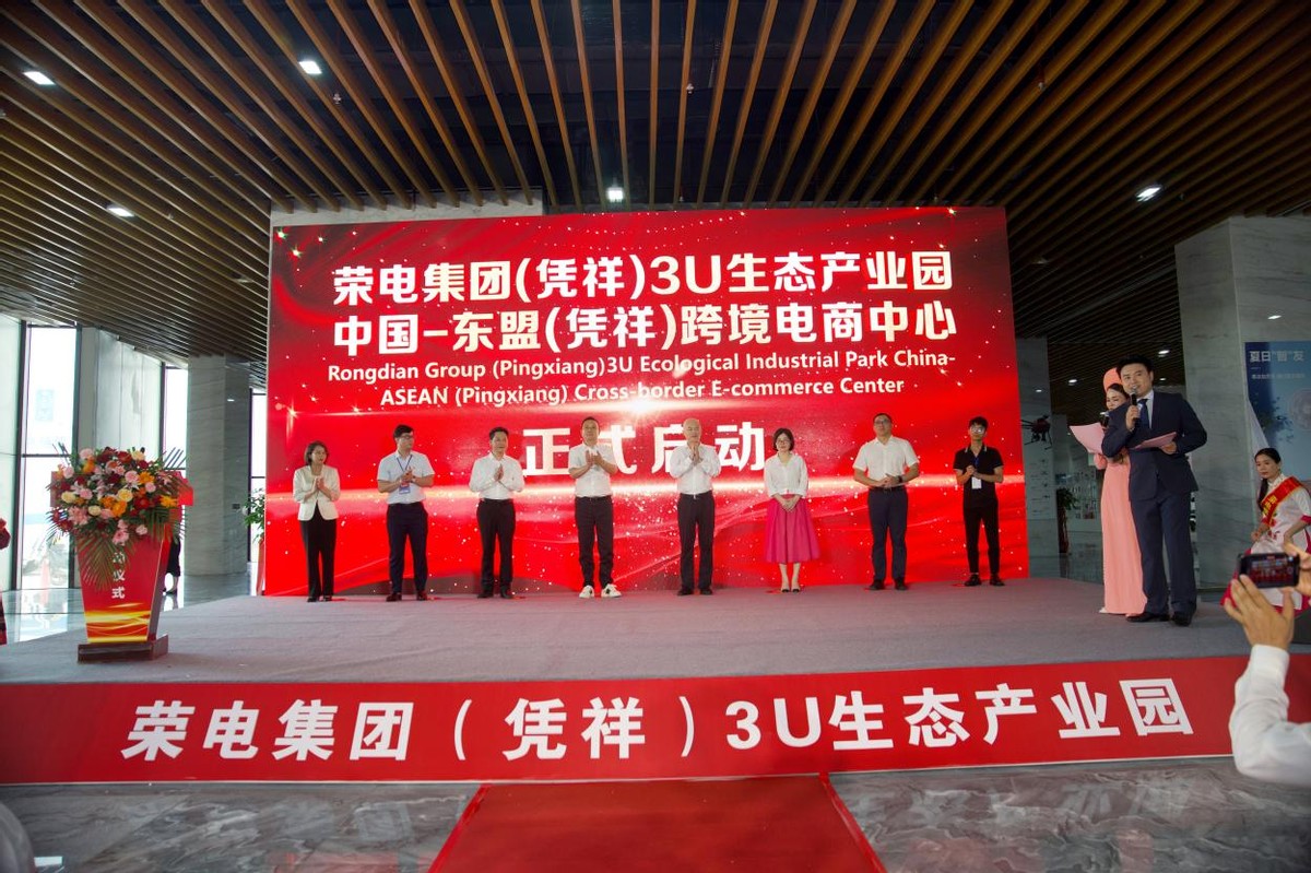 荣启新程,共创未来。在政府领导、企业嘉宾和海外客户及生态合作伙伴的共同见证下,由崇左市市委常委、常务副市长陈锋、凭祥产业园管委会常务副主任黄建辉、凭祥市政府副市长覃彩楣、凭祥产业园管委会专职副主任周诗翔 、荣电集团执行董事侯爱明、中国-东盟(凭祥)跨境贸易中心董事长彭霏等领导共同为荣电集团(凭祥)3U生态产业园 中亚国际(凭祥)跨境电商中心启动仪式。