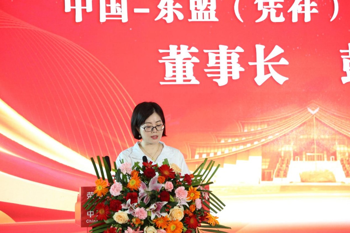 中国-东盟(凭祥)跨境贸易中心董事长彭霏介绍凭祥跨境贸易中心的业务概况,希望通过服务平台,为集团培养优秀电商人才,提供一站式电商服务,有效赋能产业园区的产业发展,助力企业和地区实现跨境电商扩展和直播电商业务高速增长。