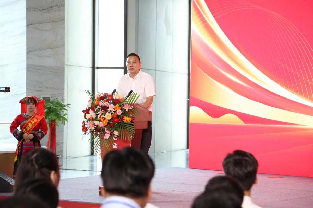 荣电集团执行董事侯爱明在开业仪式上对各位贵宾的到来表示热烈欢迎,并对凭祥3U生态产业园如何为合作伙伴赋能进行了分享。侯总表示,荣电集团致力于提供家庭消费品、企业消费品系统解决方案,在内容、服务、资源、项目、产品上,钛金属民品、智能电器、智慧家居等六大产业战略布局。围绕国际贸易,通过产业转移承接,落地跨境电商运营,实现“前店后厂”,为生态合伙伙伴提供从选品、直播带货到跨境物流的全链条赋能,推动智能电器、钛金属制品等核心产品通过跨境电商与网络直播渠道深耕中越、东盟外贸市场。