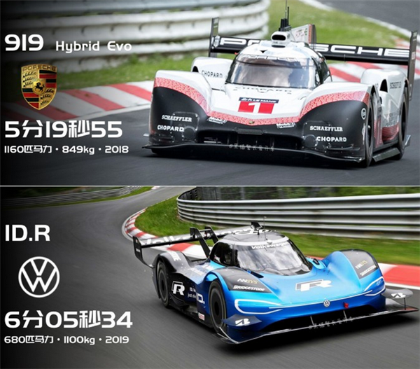 从排行榜上来看,排名第一的是保时捷919 Hybrid EVO,排名第二的是大众ID.R。