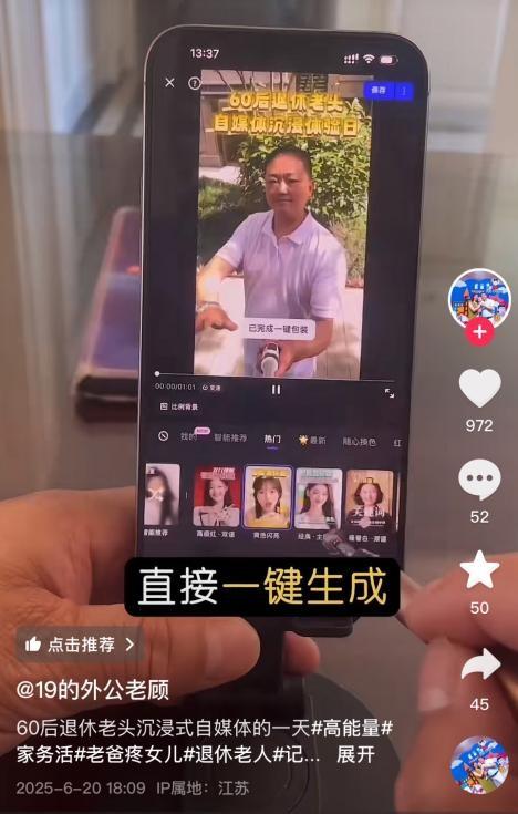 近日,一位63岁的退休大爷自拍自剪“高能量老人”口播vlog,在社交平台火爆出圈。其视频节奏紧凑、配音专业、字幕吸睛,引发网友热议“60岁正是拼网感的年纪”。凭借AI工具“开拍”的网感剪辑功能,如今,包括老年人在内的许多“零基础”人群,正在成为自媒体创作的主力军。