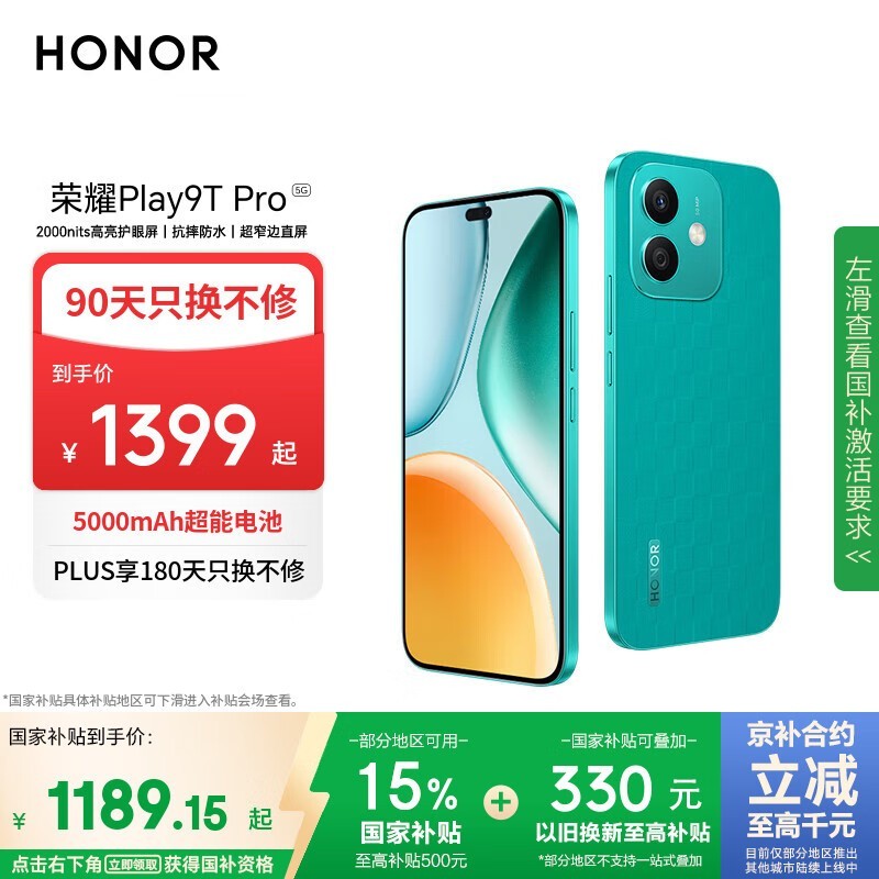 荣耀HONOR Play9T Pro 5G手机京东优惠价1146元