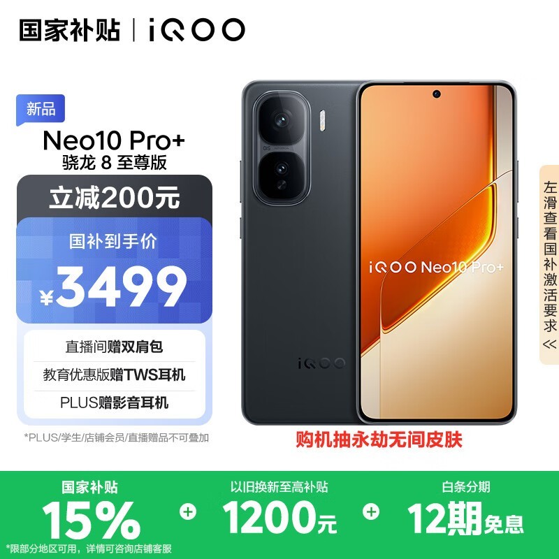 iQOO Neo10 Pro+疾影黑16GB+1TB京东优惠500元