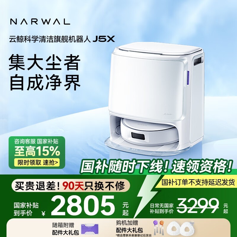 云鲸NARWAL J5X扫拖一体机水箱版白色智能清洁家电限时特惠