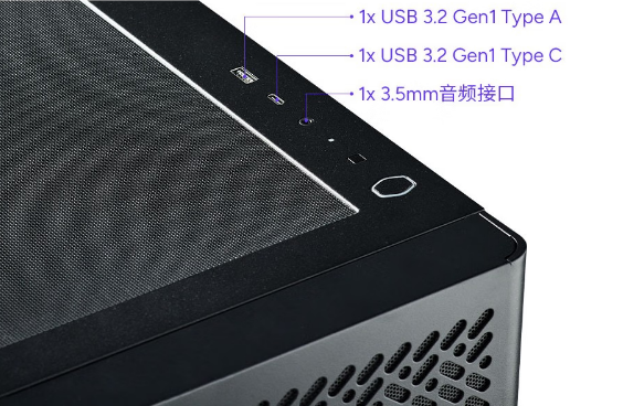 前置I/O配置上,该机箱配备了1个USB 3.2 Gen1 Type-C接口、2个USB 3.2 Gen1 Type-A接口和标准音频插孔,充分满足日常使用需求。