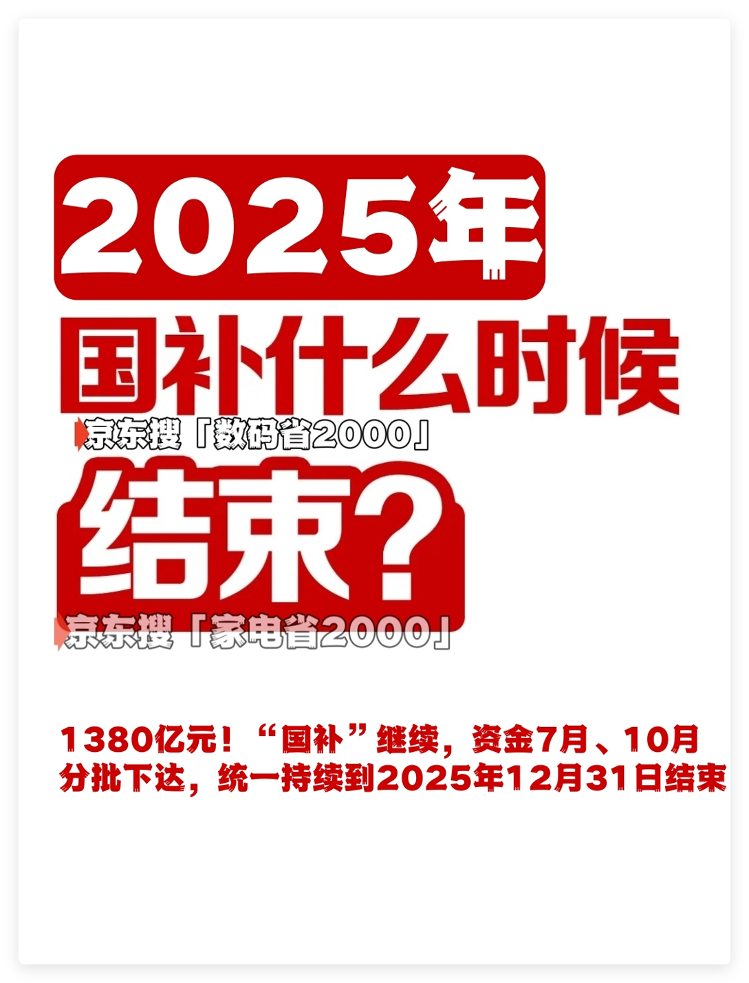重磅!国家补贴第二阶段7月重启,1380亿资金到位倒计时!“补贴页面突然显示‘额度用尽’,是不是提前结束了?”最近一周,重庆、江苏、河南等十余地的消费者在家电、汽车补贴申请时遭遇系统提示,引发广泛猜测。6月25日,国家发改委与财政部紧急发声辟谣:国补政策全国统一截止时间仍为2025年12月31日!当前暂停仅为阶段性调整,7月起将全面启动第二轮1380亿元资金投放。这意味着消费红利进入“中场加时赛”,但窗口期正加速收窄!